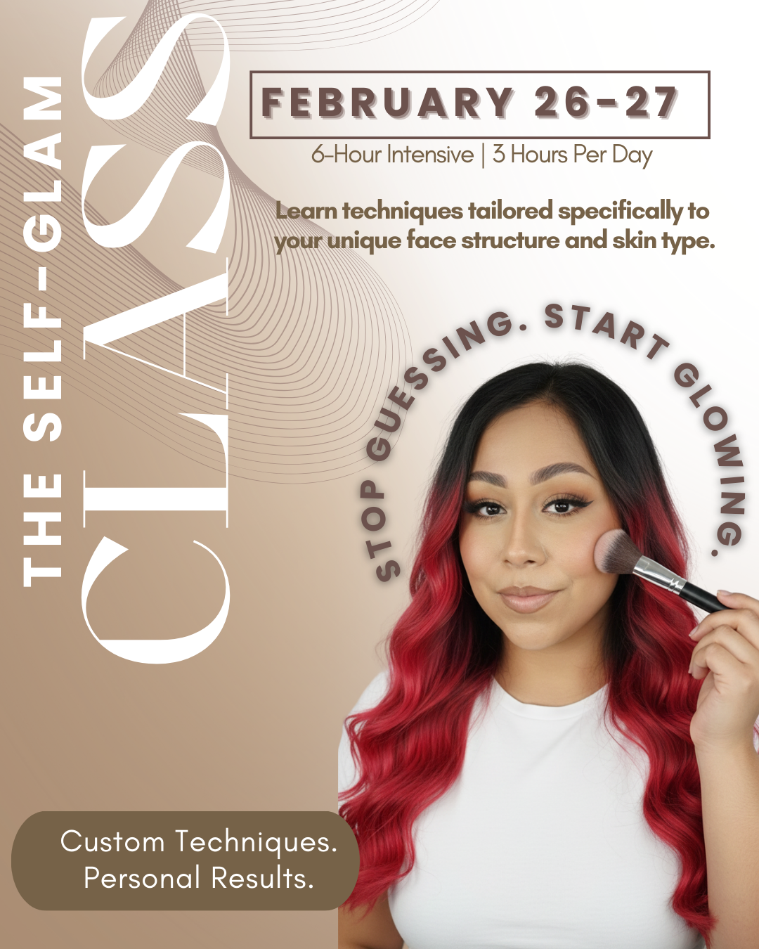 Please bring your own makeup I’ll teach you how to make the most of what you already have so you don’t have to spend hundreds.